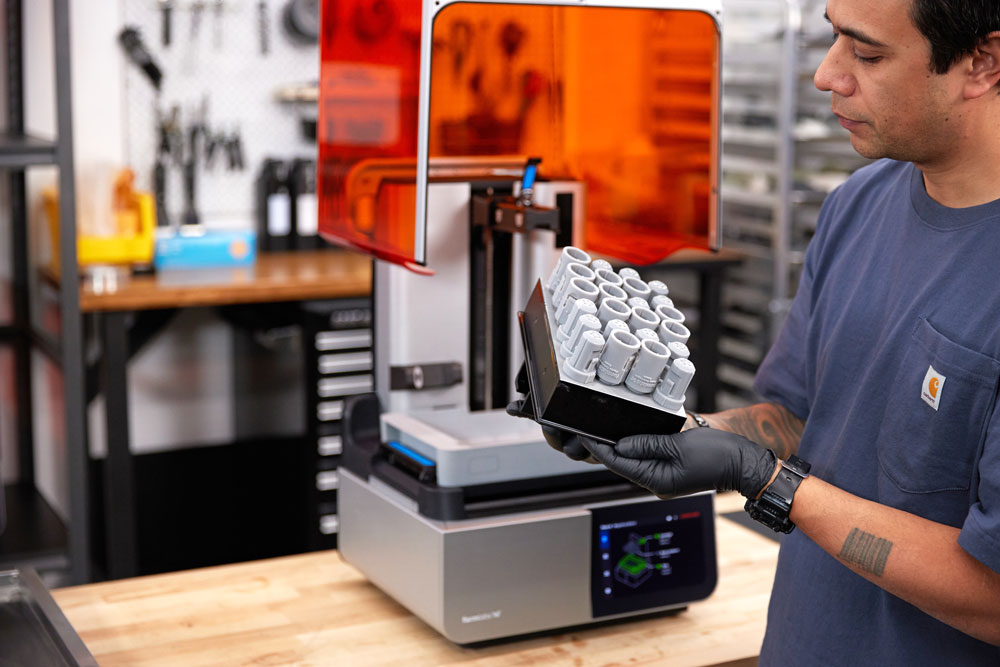 After printing, parts are thoroughly cleaned to remove excess resin.